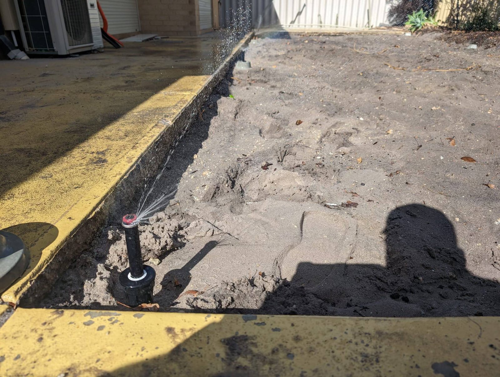 Previously, the system only covered one side of the lawn with three heads. We replaced all underground piping with 20mm PVC and installed six Hunter spray bodies paired with MP800SR nozzles for optimal distribution.