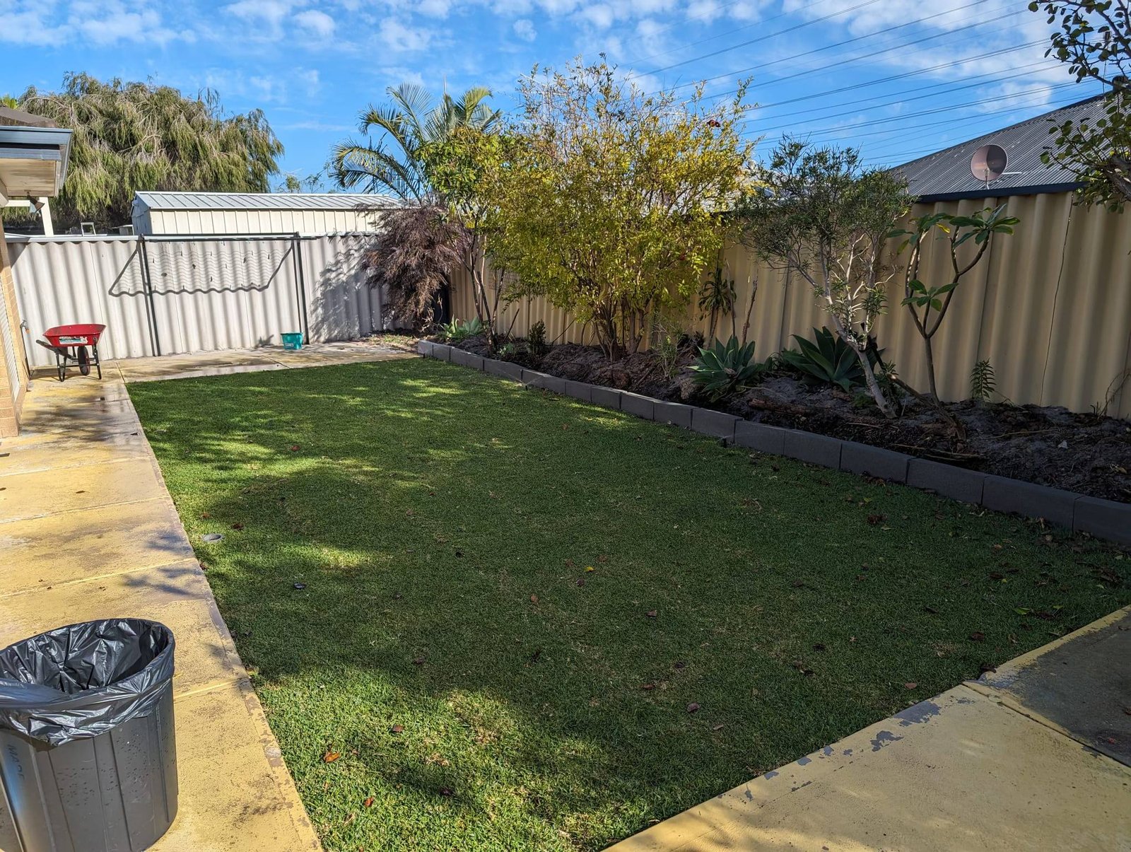 Corten steel edging was added along the Colorbond fences to make lawn edging easier and cleaner for the customer.