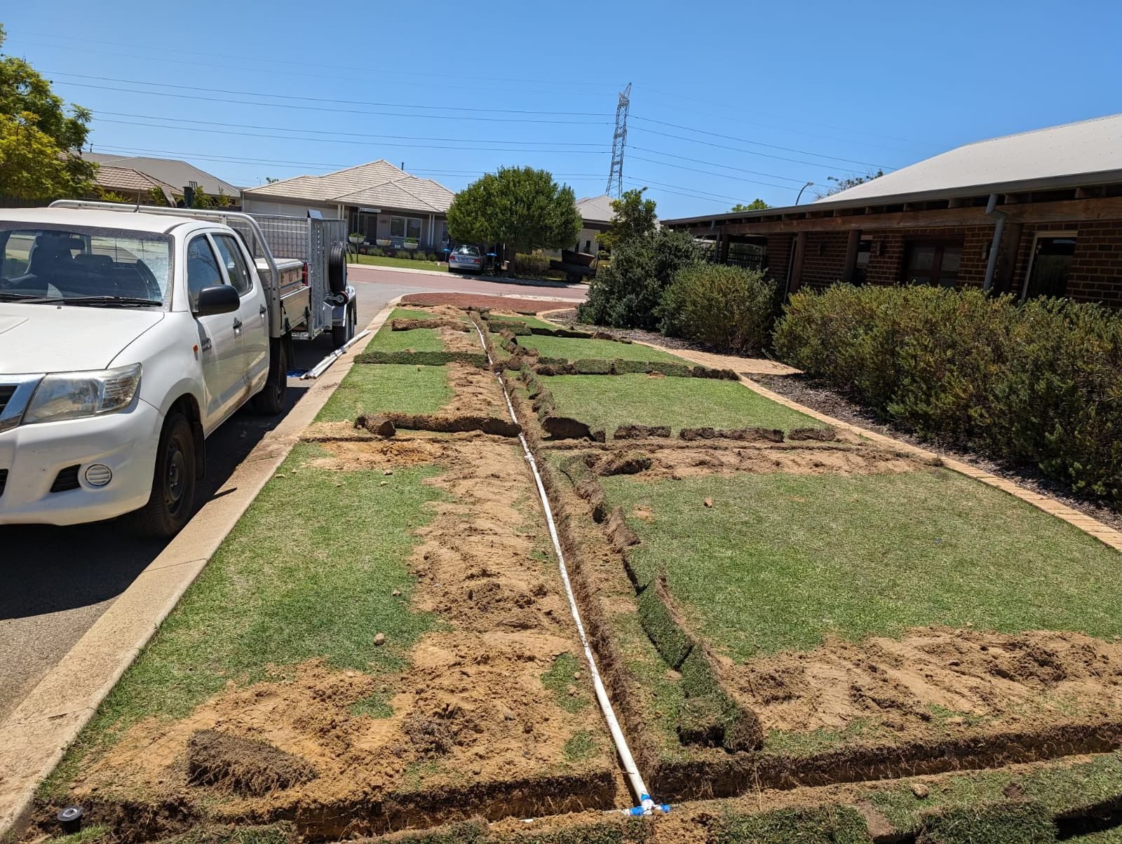 We upgraded the existing reticulation system to provide full head-to-head coverage, ensuring the new lawn receives consistent and efficient watering.